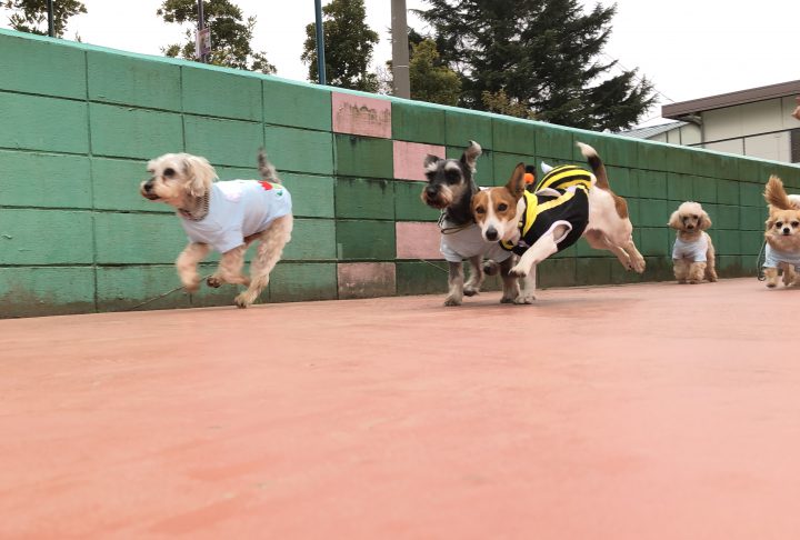 6頭中1頭だけ『はちさん』に変身したわんちゃんが