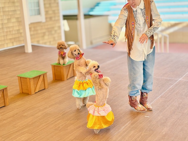 わんちゃん達が繰り広げる楽しいパフォーマンスショー!わんちゃん達が飛んだり跳ねたり踊ったり!?