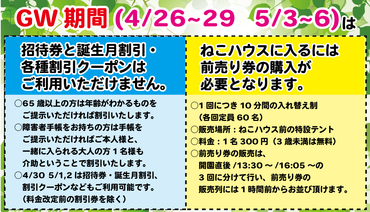 GW割引不可 猫有料2