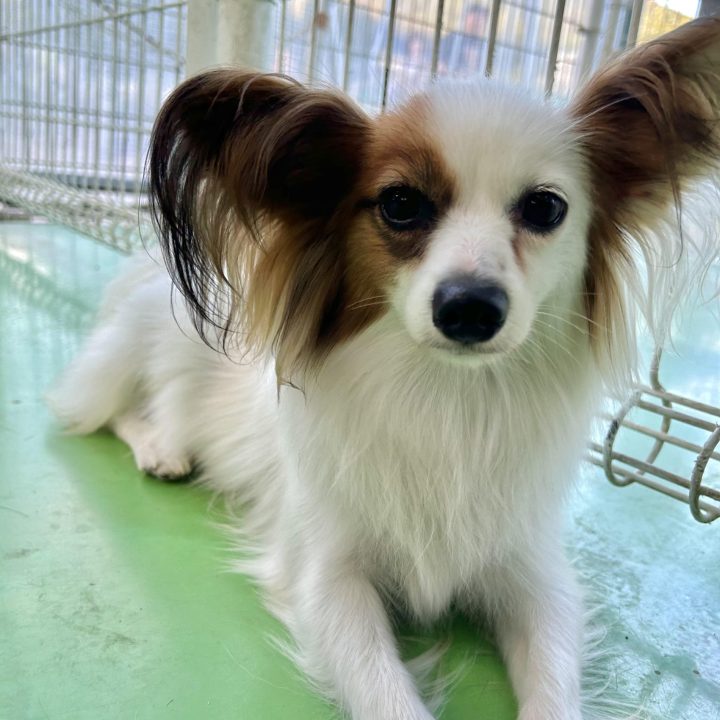 犬種:パピヨン 9月頃にブログでも紹介したパピヨン三姉妹のお母さんです! 最近レースショーにデビューしました!!! ぜひ、頑張って走ってる姿見に来てあげてください♪ 普段はふれあい広場にいまーす。
