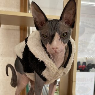 毛のない猫種でちょっと強面ですが、実はかなりのかまってちゃんなんです。